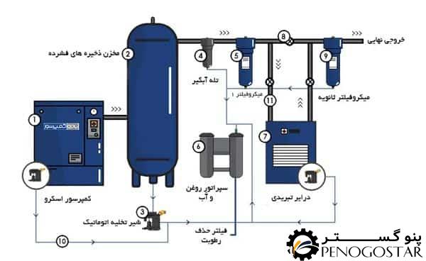 وقتی کمپرسور هوا شروع به تولید هوای فشرده میکند، رطوبت موجود در هوا هم همراه آن وارد سیستم میشود. این رطوبت اگر کنترل نشود، میتواند به قطعات پنوماتیک و دستگاههای صنعتی آسیب جدی وارد کند. از آنجایی که وجود رطوبت در هوای فشرده امری طبیعی و اجتنابناپذیر است، استفاده از رطوبتگیر یک راهحل ضروری برای محافظت از تجهیزات محسوب میشود. در ادامه نحوه نصب تله آبگیر را بیان میکنیم.